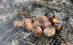 残しておいた15個の栗を熾火となった火の中へ放り投げ、